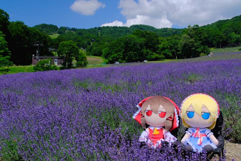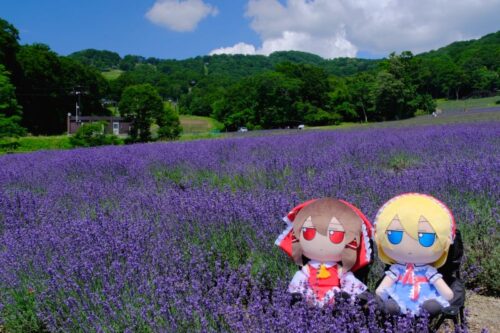 まんなかさいずのアリスさんや霊夢さんも連れてきていたのでラベンダー畑で撮影です