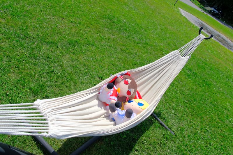 ブランコやハンモックがあったのでアリスさんと霊夢さんで楽しんでもらいました😊