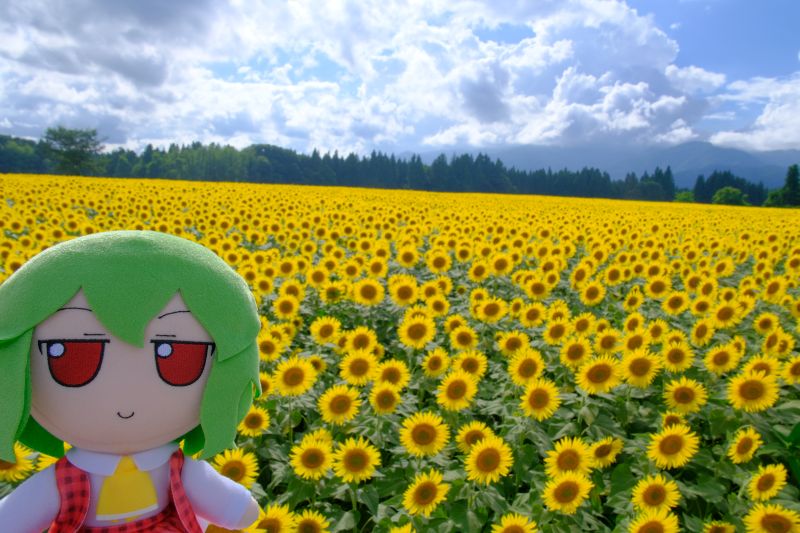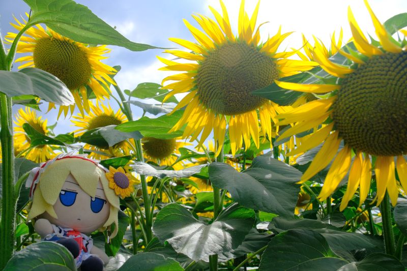 青霊夢「今日は、結構遠いところまで来たわね隣町はもう長野県よ。ここのひまわり広場、凄く広い!キレイだしみんなこっち向いている!凄くかわいい🥰来て良かったわね」#fumo #ふもふも #青霊夢のぷるぷる日記 pic.twitter.com/ptbjLG97kc