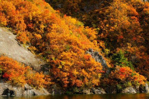奥只見シルバーラインは大半がトンネルなのでこういう紅葉を見るポイントはほとんど無いのです。紅葉が見たかったら枝折峠を走るべきなんだけど冬季通行止めだし仕方がないよね