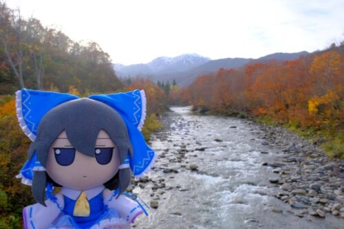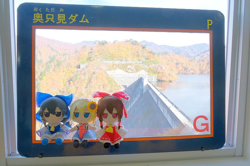 青霊夢「あれが奥只見ダムなの?アリスさんやでかふもれいむさんにお話しを聞いた事がありました。主によく連れて行かれるんだよってね。とうとう私も連れてきてもらえました。こんな紅葉の綺麗な時期で嬉しいです」#ふもふも #fumo #青霊夢のぷるぷる日記 pic.twitter.com/uWH3FeqEJZ