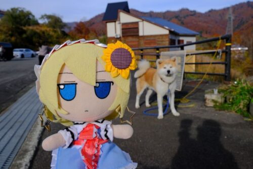 アリス「あれ?あそこに居るのは秋田犬かしら?珍しいわね。奥只見レイクハウスさんの看板犬かしら?ほらせっかくだから青霊夢、遊んできなよ」