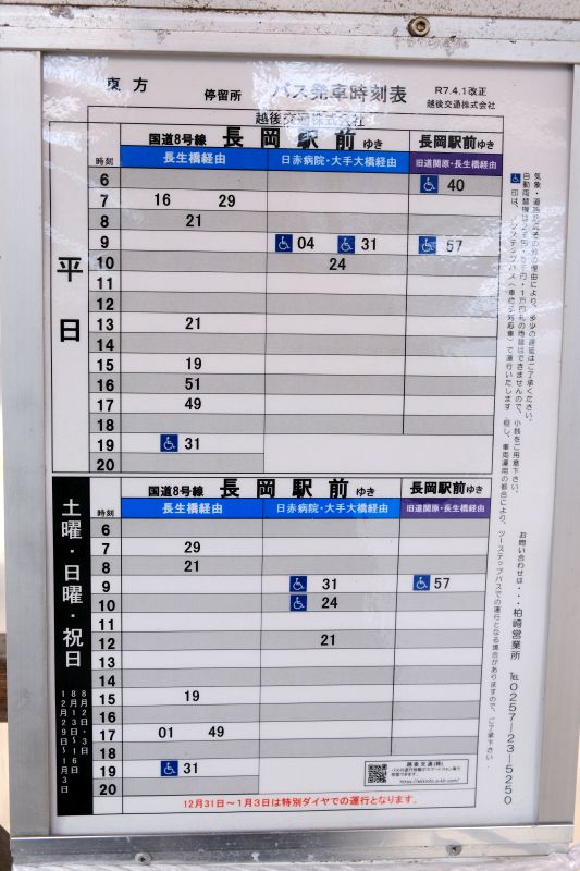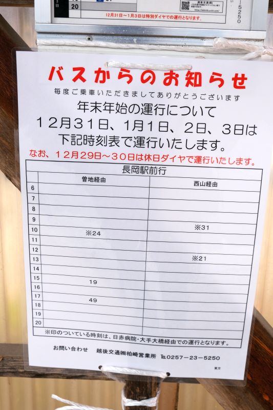 ちなみに時刻表(長岡駅前行)です(2025年12月現在)