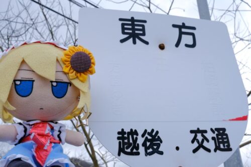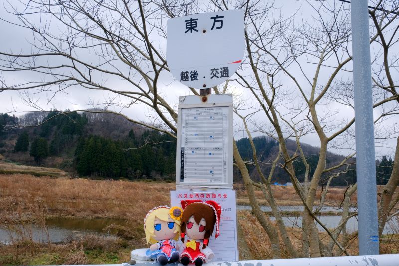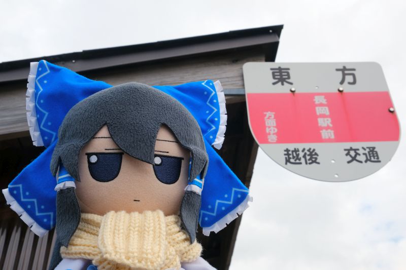 青霊夢「ここのバス停も東方!?行き先が書いていないじゃない?もしかして幻想郷に行けるバスなの?越後交通さんいつの間に幻想郷行きのバス停を作ったの?」