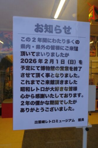 出雲崎レトロミュージアムは2026年2月1日に閉店するとのことです。