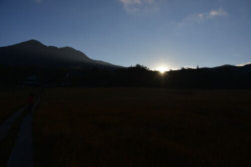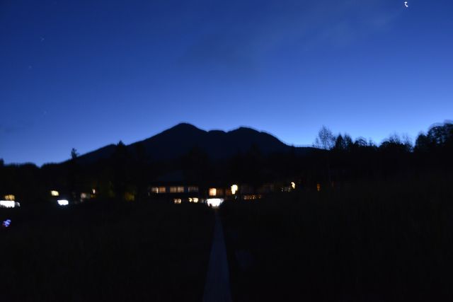 4時に外へ出たら すでに尾瀬ヶ原の方でライトの明かりがポツポツ見えてました