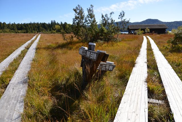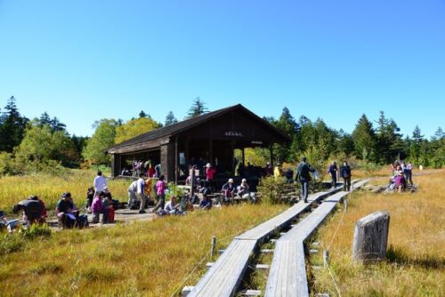 湿原の中央辺りに休憩場所があるので、いったん休憩をして装備を整えます。