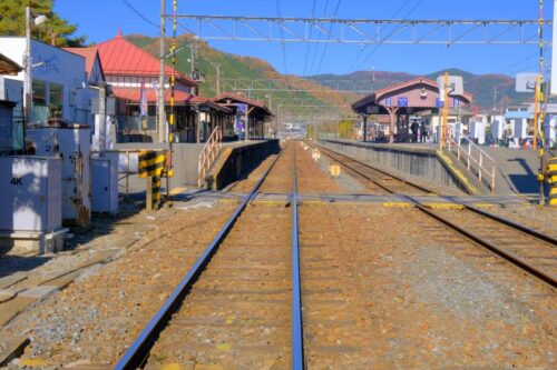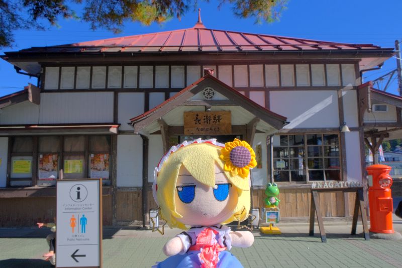 アリス「ココが長瀞駅ね。なんかレトロな建物ね昔から建て直ししていないのかな?こういう雰囲気の建物って良いよね。丸型ポストがあったり昭和レトロを残した良い感じの駅舎ね」