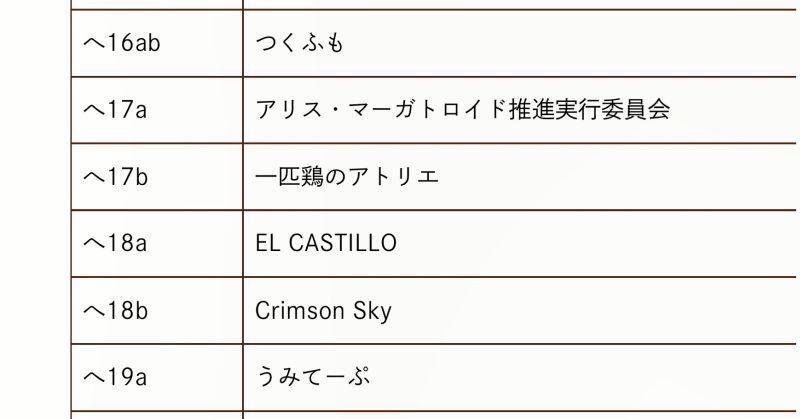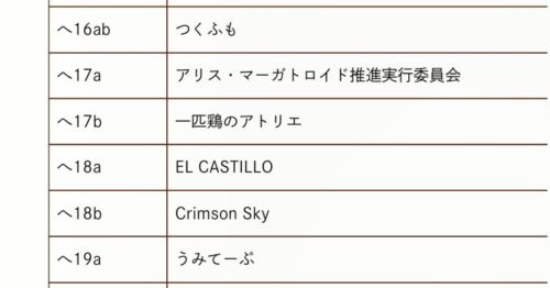 配置は【へ18b】になります。一般の最終行が【へ】なので会場の端っこになると思います。お隣が年齢制限エリアか企業エリアの可能性が高いですが配置図が出たらまた書きますね